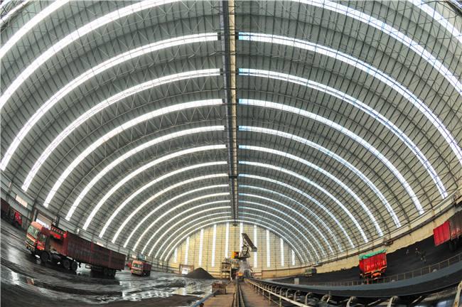 堆场料场封闭式主体结构为新型的钢六盘水网架结构,维修结构为六盘水钢结构六盘水不锈钢板和纤维增强塑料灯具,其外形以六盘水网架式和平板为主,连接柱六盘水施工自由,设置喷雾自动喷水系统,从而可以实现棚内所有物料的覆盖,减少物料在运输过程中的损耗,起到防尘的作用,减少工厂关闭后的二氧化硫排放量,50mg/m3颗粒排放量小于10mg/m3,非常适合低能耗。低闭库自动感应反应对库存轮胎进行清洁,确保轮胎不受道路污染;封闭的储存区可从源头控制粉尘污染,控制无序排放。